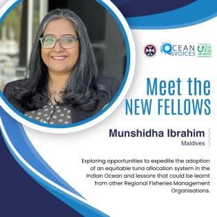 Munshidha Ibrahim is joining Ocean Voices Fellowship in October 2024. Munshidha Ibrahim Munshidha’s experience lies in the field of biodiversity and marine resource management. As a Director leading the Fisheries Management Section of the Maldives Ministry of Fisheries, Marine Resources and Agriculture, Munshidha has a strong commitment to improving the policy and management framework for the Maldives fisheries sector. Her aspiration is to explore and develop innovative environmental and fisheries management solutions and to integrate socio-ecological dependence and connections into the policy dialogue and enhance the science-policy interface in the country’s as well as regional policy interventions. At her current position, she works to develop and implement fisheries management activities at regional and national level and is a member of the official delegation of the Maldives to the Indian Ocean Tuna Commission. Before joining the Ministry, she worked as a Social Science Officer at IUCN Maldives to understand stakeholder dependence on natural resources and their conservation targets. In this role, she has had strong exposure to community-based project planning, socio-economic research, community outreach and engagement, and development of environmental education programmes. During the fellowship, Munshidha will continue her research focus on “Exploring opportunities to expedite the adoption of an equitable tuna allocation system in the Indian Ocean and lessons that could be learnt from other Regional Fisheries Management Organisations”. Publication date 15 Oct, 2024